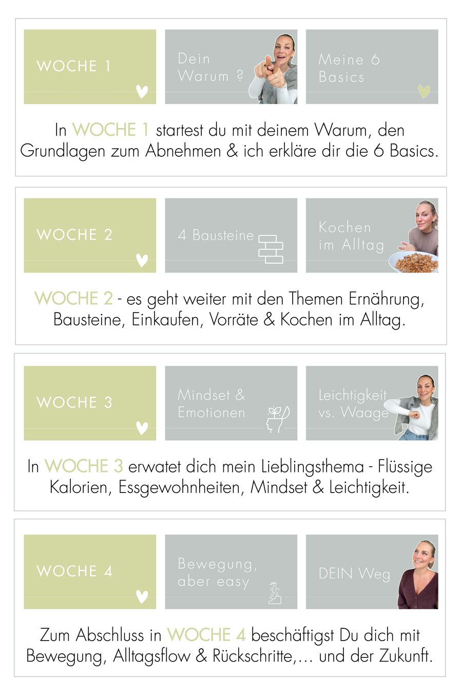 - 30 Tage Begleitung mit Videolektionen, Grafiken, Downloads, u.v.m.