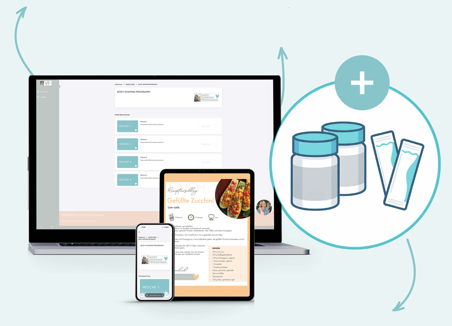 Nur die Produkte alleine bringen nicht den Erfolg. Meine Erfahrung (und die tausender Kund:innen) bestätigt, dass es auch einen gesunden Lebenswandel braucht. Deshalb gibt es den Onlinekurs dazu.