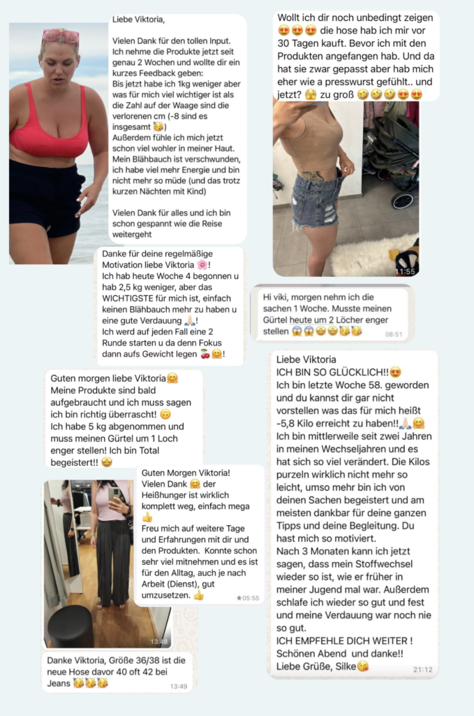 Die Produkte alleine bringen nichts. Ich hab mit meinem Programm in den letzten Jahren effektive & einfache Tricks im Alltag aufgebaut, gesunde Routinen, Lebensmittel die einen unterstützen. Meine Helferlein optimieren das ganze dabei und werden geschickt angewendet. So, dass die Ergebnisse maximal sind!